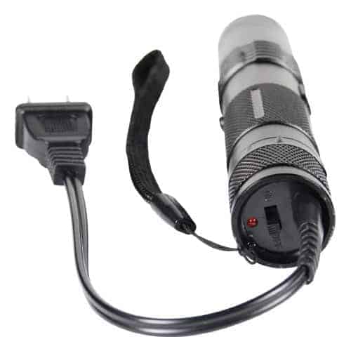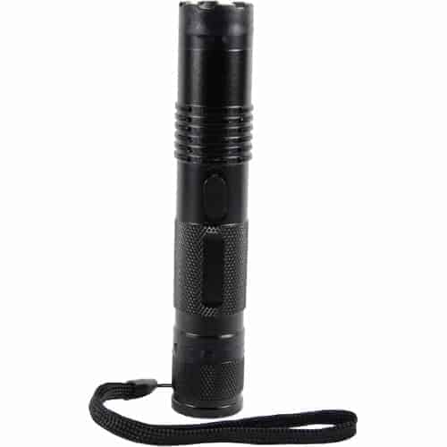 The Safety Technology BashLite 15,000,000 volts Stun Gun Flashlight has a sleek durable design. It is made from high quality aircraft grade aluminum. The BashLite will strike with 4.7 milliamps of stun power. The knockout punch of the stun gun will take an attacker down very quickly leaving them in pain and on the ground. The super bright 120 lumen light can be used tactically and shined in the eyes of an attacker to temporarily blind them. It comes with a wrist strap lanyard and has an on/off safety switch. The sleek design is perfect so it can fit easily in a pocket, side door of a car, or in your hand ready to strike. It measures 5 3⁄16;” x 1″, comes with a wall charging cord and nylon holster.