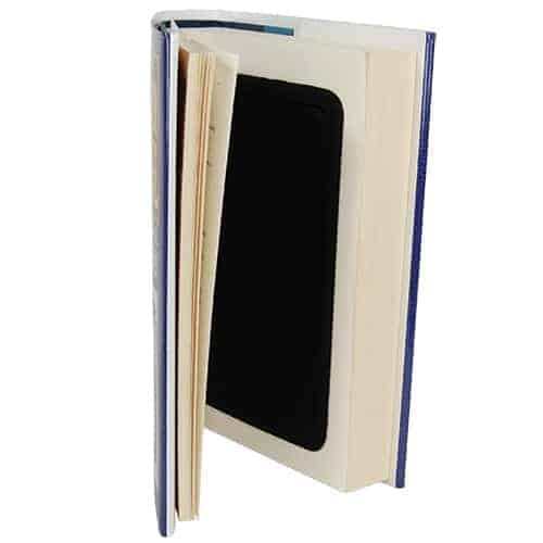 The dimensions of the cut out space inside are about 7 3/4 x 4 x 1 inches. The inner compartment has a soft velour finish to protect your possessions. The fitted cover insures that valuables are “held” in place and won’t fall out even if the book is dropped.