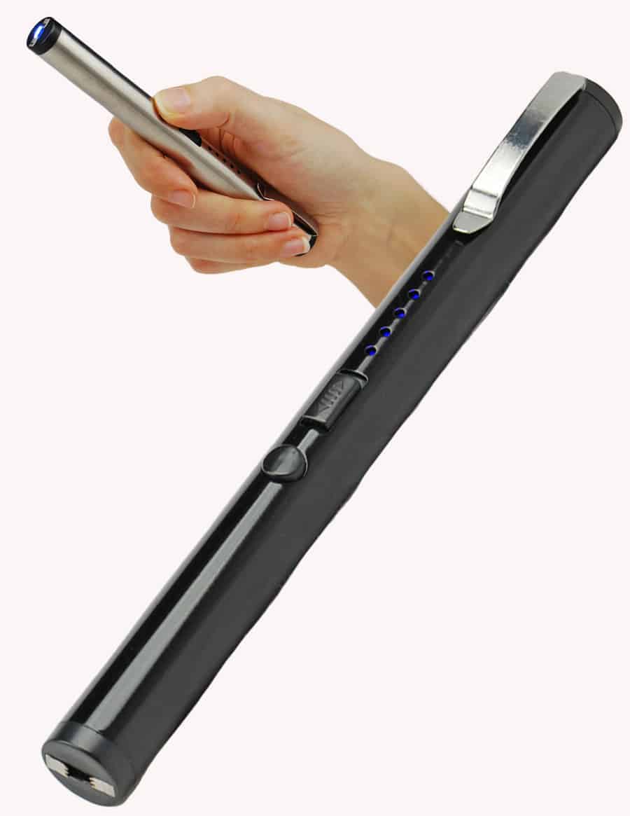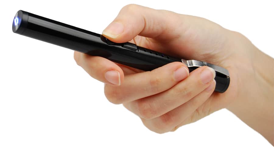 The Stun Pen’s slim design allows you to carry it in your pocket or purse. No one will know this is a high-tech, powerful self-defense tool until it is too late! The Stun Pen comes with a metal clip on the top of the unit. This makes it easy to hold firmly in place on your pocket, purse, backpack, or shirt, so you always have it close at hand. The LED battery status indicator lights display the charge level so you will never be caught off guard without a full charge.